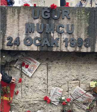 Bugünkü adı Uğur Mumcu Sokağı olan Karlı Sokak’ta 24 Ocak 1993’te üç patlama sesi yankılandı. Araştırmacı gazeteci, Türk basınının cesur kalemi Uğur Mumcu, evinin önündeki arabasına yerleştirilen C-4 tipi bomba düzeneğiyle gerçekleştirildiğini bildiğimiz hain bir suikast sonucunda hayatını kaybetti. Aradan geçen 29 yıla rağmen başta aile üyeleri olmak üzere yaşanan acının hâlâ taze olduğu yapılan anma töreninde görmek mümkün. Öte yandan Uğur Mumcu’nun anısını yaşatmak adına başta eşi Güldal Mumcu ile çocukları Özge Mumcu ve Özgür Mumcu’nun azami ölçüde özen gösterdikleri biliniyor.