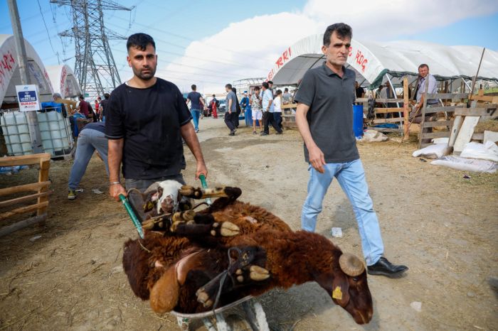 Bahattin Doğan ise “Tekstilde çalışıyorum. Kurban bayramlarında kesime geliyorum. Şu ana kadar beş tane kestik. Geçen sene aynı yerde burada elimi kestim. Bu sene de inşallah bir sakatlık olmaz" ifadelerini kullandı.