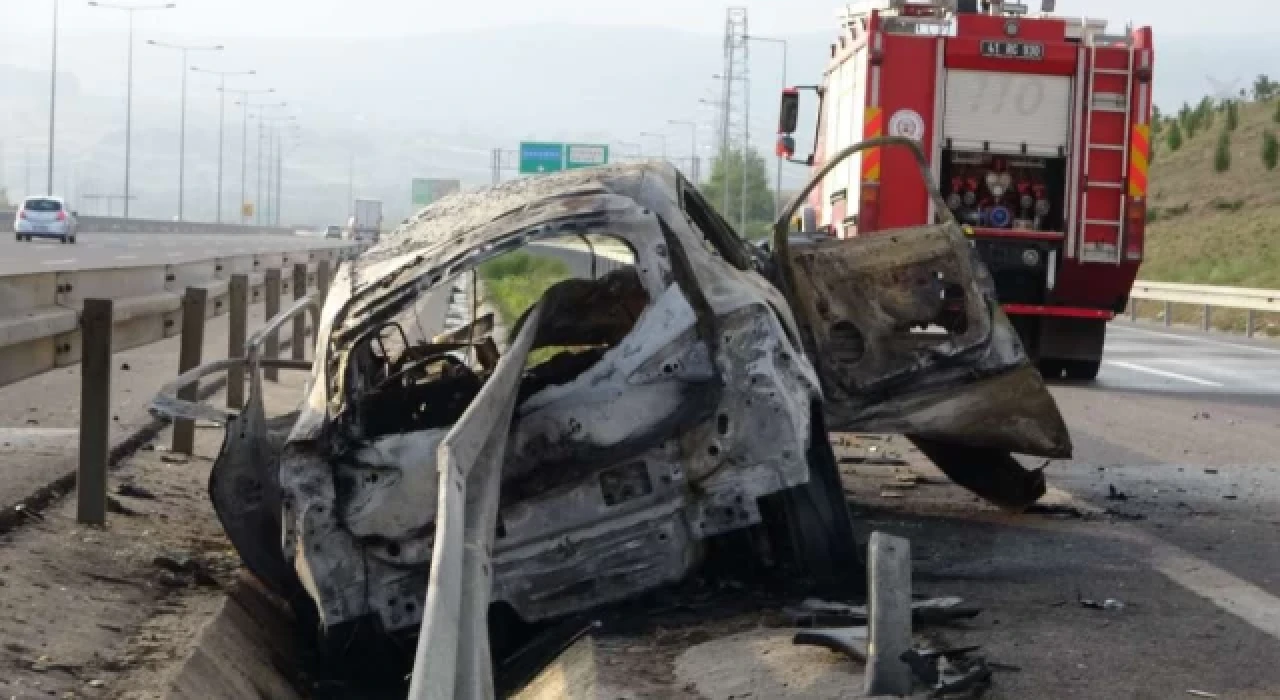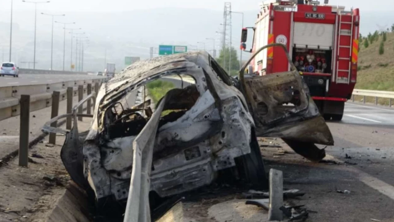 Kuzey Marmara Otoyolu’nun Kocaeli geçişinde meydana gelen kazada bariyer otomobilin önünden girip arkasından çıktı. Kaza sonrası alev alan otomobildeki 2 kişi yanarak hayatını kaybetti, 1 kişi yaralandı.