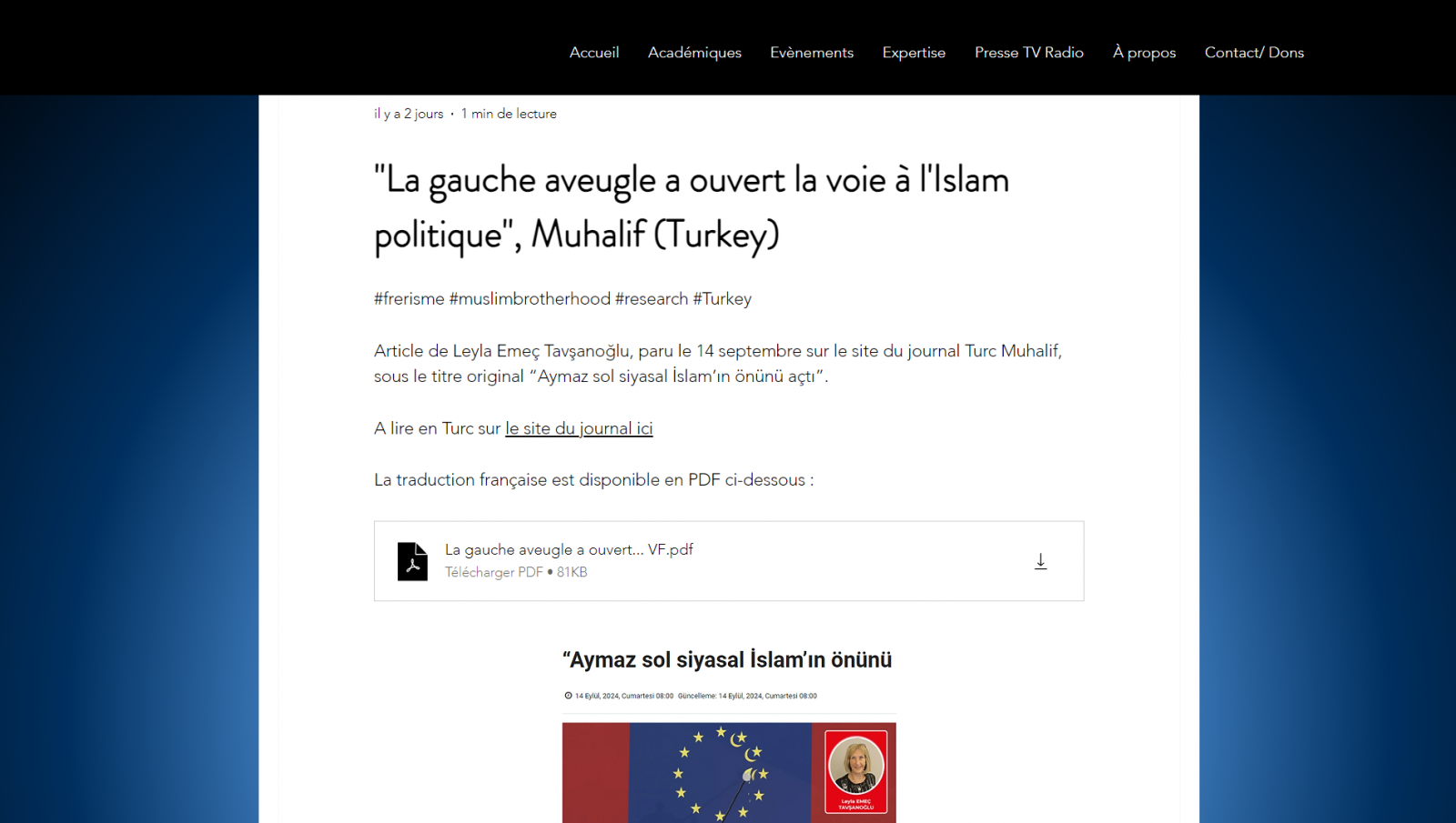 Leyla Emeç Tavşanoğlu'nun birkaç gün önce kaleme aldığı “Aymaz sol siyasal İslam’ın önünü açtı” başlıklı yazısı, başta metinde ismi geçen Fransız antropolog Dr. Florence Bergeaud-Blackler olmak üzere birçok Fransız tarafından paylaşıldı.
