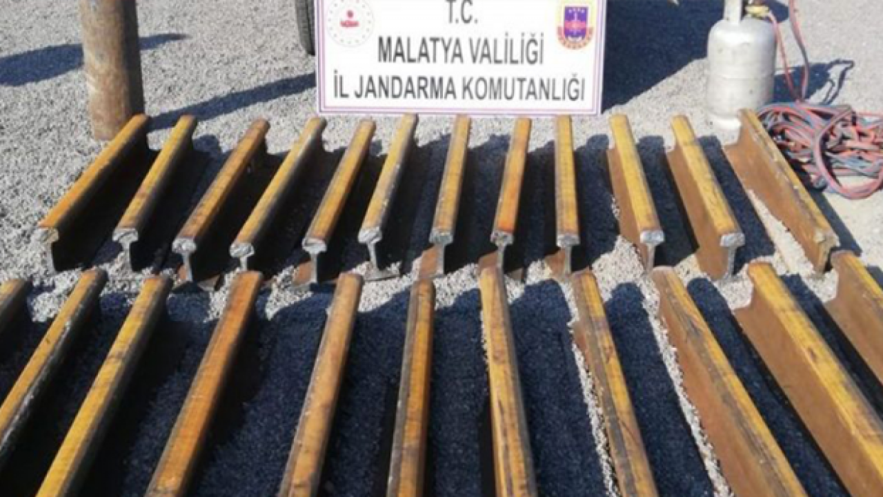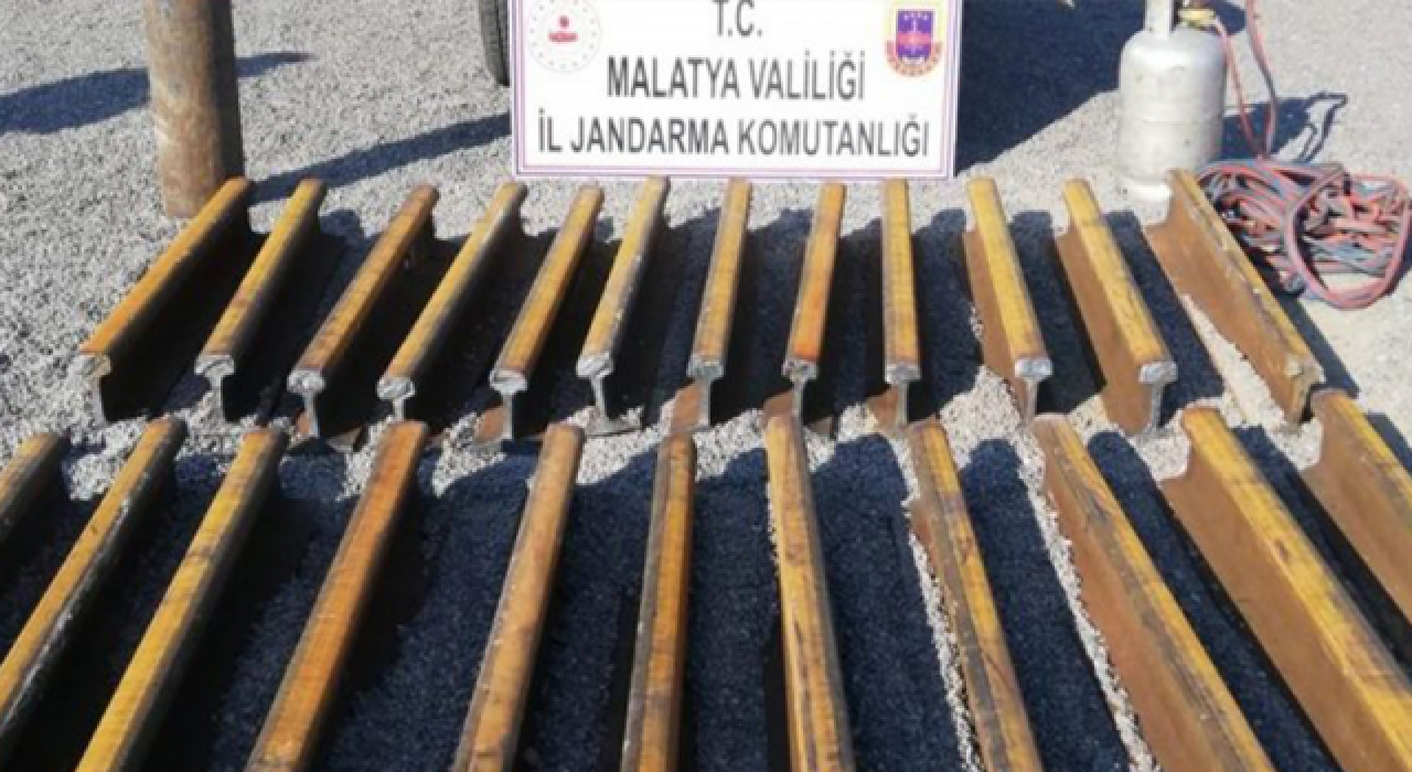 Malatya'da 29 metre uzunluğunda, yaklaşık 1 ton 700 kilogram ağırlığındaki tren raylarını çalan 2 kişi tutuklandı.