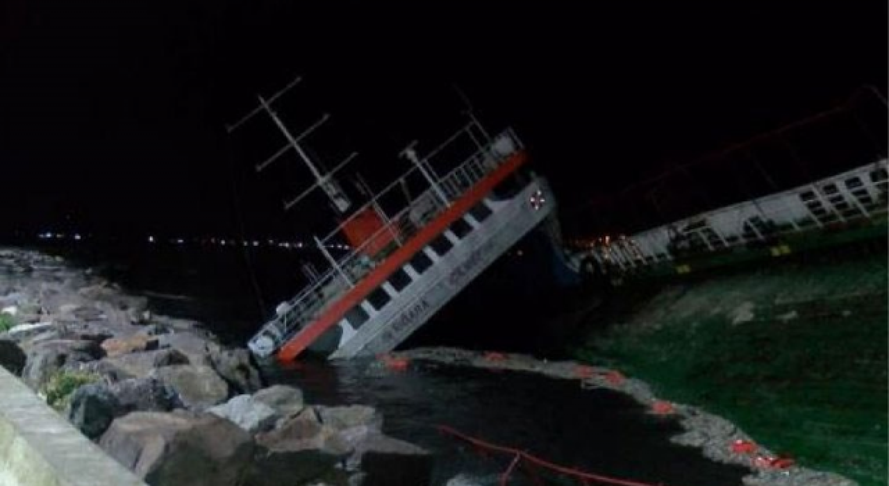 İstanbul'da dün sabah saatlerinden itibaren etkili olan kuvvetli lodosun etkisiyle akşam saatlerinde Kumcular İskelesine demirli gemilerden AYİS 1 isimli Ro Ro gemisinin halatı koptu.