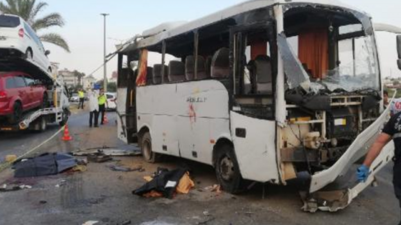 Antalya Manavgat kara yolu üzerinde kontrolden çıkan midibüs karşı şeride geçerek yan yattı. Midübüsteki turistlerden 2'si öldü, çok sayıda yaralı var. Olay yerine çok sayıda ambulans sevk edildi.