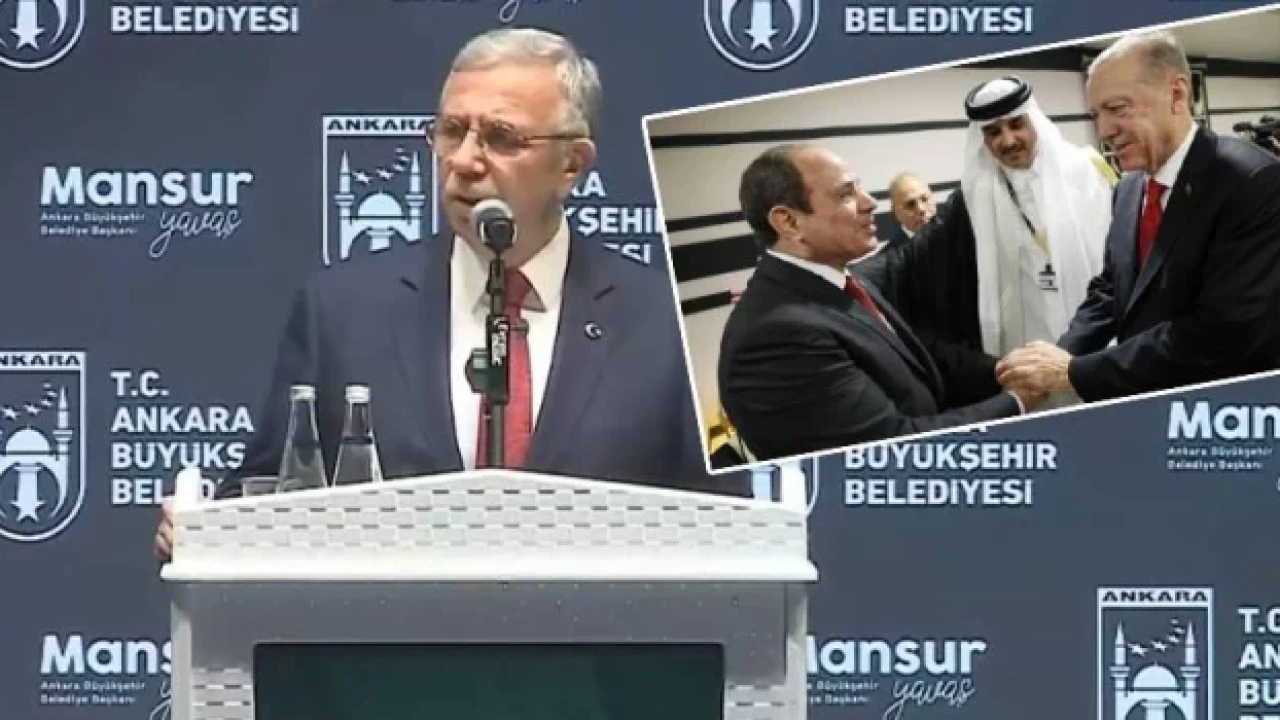 Ankara Büyükşehir Belediye Başkanı Mansur Yavaş, Cumhurbaşkanı ve AK Parti Genel Başkanı Recep Tayyip Erdoğan’ın daha önce çoğu kez ’darbeci’ dedikten sonra selam verdiği Mısır Cumhurbaşkanı Sisi’yi anımsatarak, ”İstanbul, Ankara kaybedilirse; “Mekke düşer” dediler. “Zillet bela, Cumhur beka” dediler. Hatta “Mursi mi Sisi mi” dediler. Bizler seçimi kazandıktan sonra ne Mekke düştü, ne beka sorunumuz oldu. Kendisi de Mursi’den vazgeçip Sisi ile el sıkıştı.” ifadelerini kullandı.