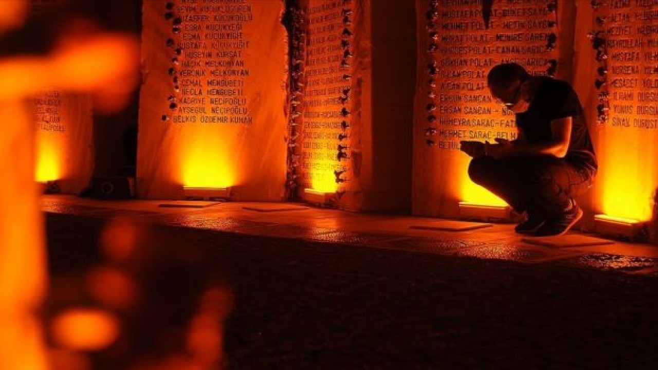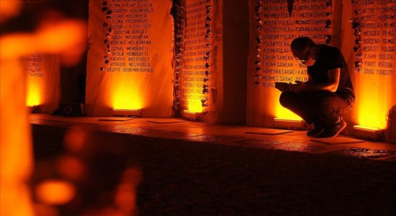 Depremde hayatını kaybedenlerin isimlerinin yazılı olduğu mermer blokların bulunduğu anıta gelen katılımcılar, deprem günü çekilen fotoğrafların bulunduğu salonları gezdi.Deprem günü kaydedilen kurtarma görüntülerini izleyen katılımcılar, ardından aynı alanda Kur'an-ı Kerim tilaveti ve okunan mevlidi takip etti.