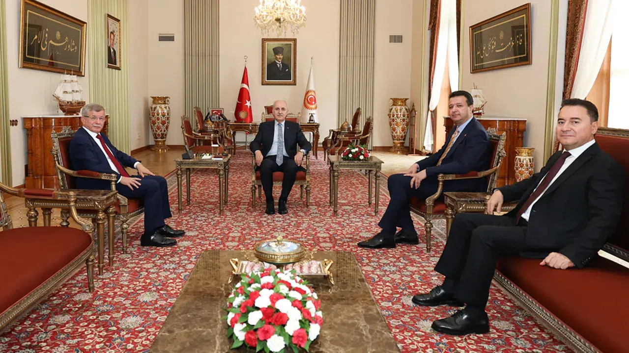 TBMM Başkanı Numan Kurtulmuş, Saadet Partisi Genel Başkanı Mahmut Arıkan, DEVA Partisi Genel Başkanı Ali Babacan ve Gelecek Partisi Genel Başkanı Ahmet Davutoğlu'nu kabul etti.
