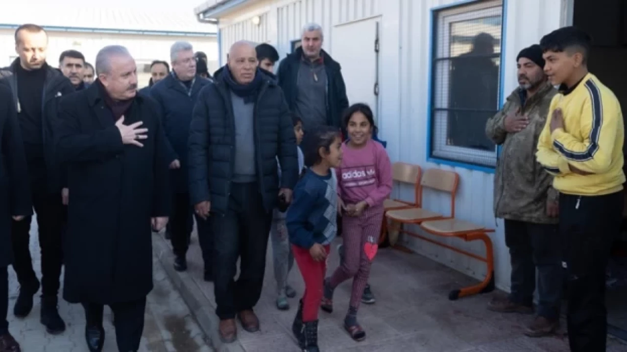Deprem bölgesinde ziyaretlerini sürdüren Meclis Başkanı Şentop, ilk olarak Kilis Zeki Taşçı İlköğretim Okulu bahçesinde kurulu konteynırlarda kalan aileleri ziyaret etti.