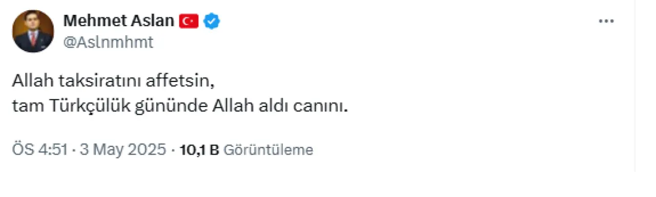 Mehmet Aslan’ın paylaşımı sosyal medyada farklı yorumlara neden olurken, bazı kullanıcılar bu sözleri siyasi bir göndermeyle ağır buldu, bazıları ise ölüm karşısında herkesin daha saygılı olması gerektiğini vurguladı.