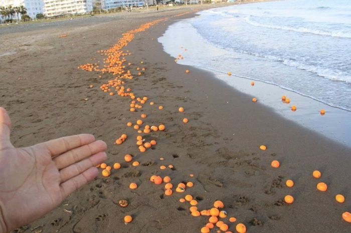 Muhalif. GÜNDEM Mersin'de sahile portakal vurdu