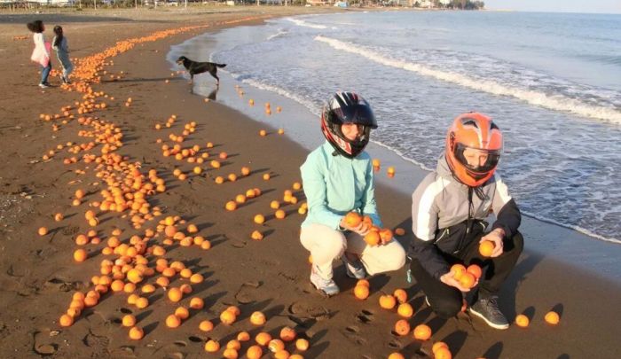 Mersin'de sahile portakal vurdu