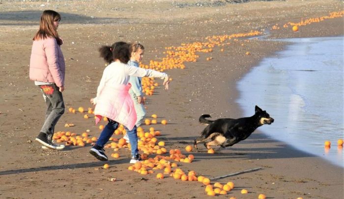 Mahalle sakinleri, Arpaçbahşiş Deresi'ne dökülen portakalların akıntıyla denize, oradan da sahile geldiğini aktardı.