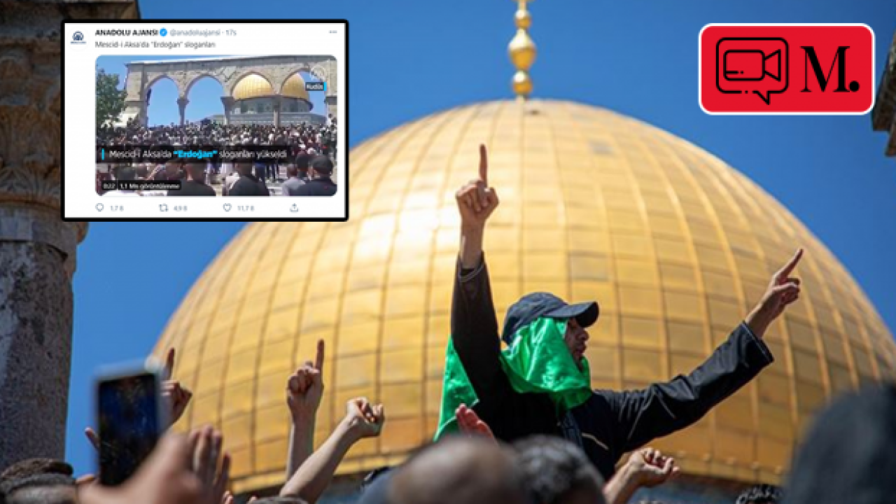 AA, Twitter üzerinden ‘Mescid-i Aksa’da ‘Erdoğan sloganları’ başlıklı bir video paylaştı.