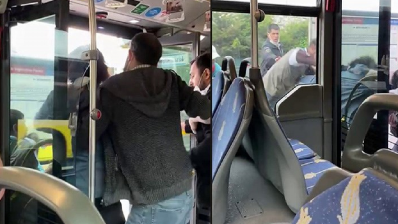 İstanbul’da seyir halindeki bir metrobüste bir grup ile bir genç arasında kavga çıktı.