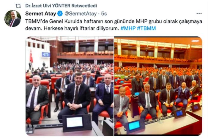 MHP Gaziantep Milletvekili Sermet Atay da Ersoy’un da aralarında yer aldığı MHP’li milletvekillerinin fotoğrafını Twitter hesabından paylaştı. Genel Başkan Yardımcısı Yönter’in, Atay’ın bu paylaşımını yeniden paylaşması ayrıca dikkat çekti.