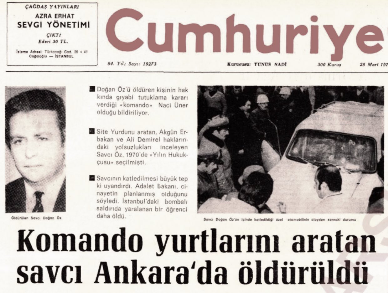 Necmettin Erbakan ile Süleyman Demirel’in yakınlarının yaptığı yolsuzlukları açığa çıkaran Öz, kontrgerilla yapılanmasına yönelik soruşturma başlatan ve hazırladığı raporu dönemin başbakanı Bülent Ecevit’e ulaştırdıktan kısa süre sonra suikasta uğramıştı. Başarılı öldürülmesinin üzerinden 45 yıl geçti.