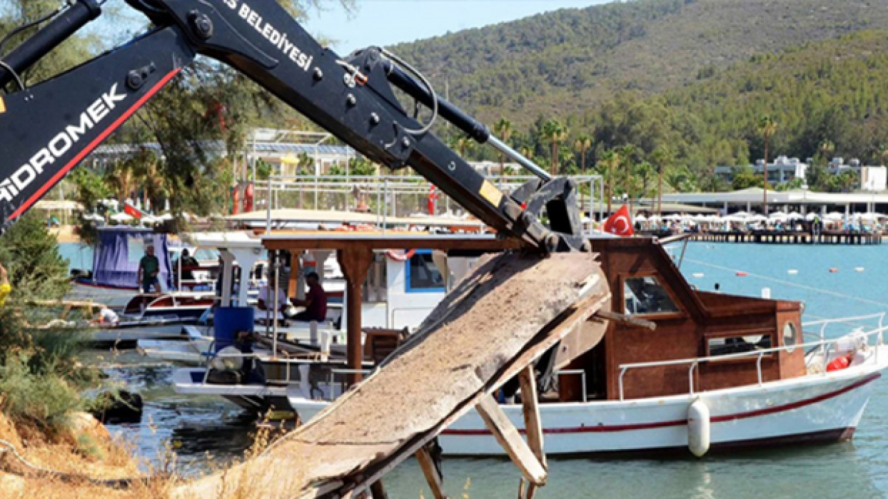 Muğla'nın Milas İlçesi'nde kaçak olarak yapılan ve özel tekneler tarafından kullanılan yaklaşık 10 iskeleye yönelik yıkım çalışması başlatıldı.