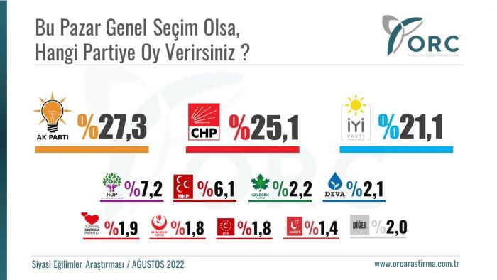 2018 yılındaki Cumhurbaşkanlığı ve genel seçimlerin resmi sonuçlarına en yakın anket verilerini paylaşan ORC, 18-22 Ağustos tarhileri arasında 51 ilde 5 bin 310 kişi ile yüz yüzde yaptığı seçim anketi sonuçlarını açıkladı.