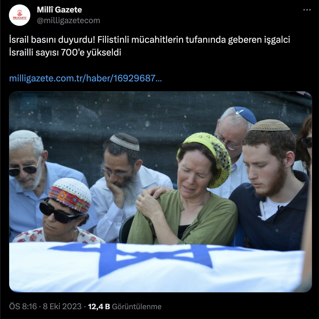 Muhalif. GÜNDEM Milli Gazete'den yaşamını yitiren İsrailliler için iğrenç ifadeler