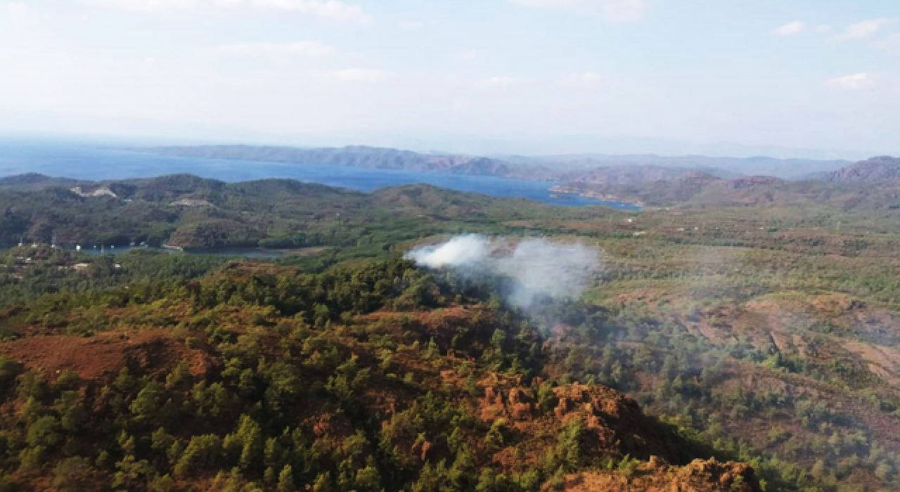 Muğla'nın Marmaris ilçesinde ormanlık alanda çıkan yangın kontrol altına alınmaya çalışılıyor.