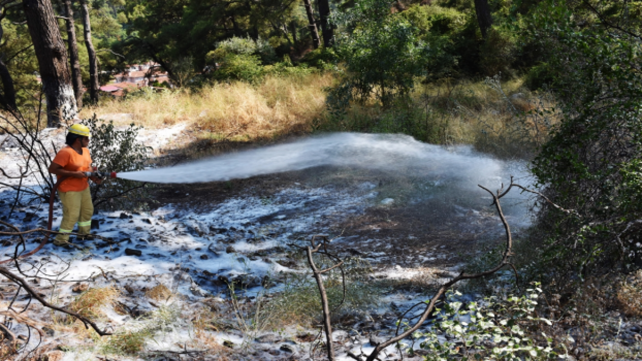 Muğla'nın Marmaris ilçesinde ormanlık alanda çıkan yangın, kontrol altına alındı.Hisarönü Mahallesi İnbükü mevkisindeki ormanlık alanda yıldırım düşmesi sonucu yangın başladı.İhbar üzerine bölgeye sevk edilen 1 helikopter, 8 arazöz ve Muğla Orman Bölge Müdürlüğüne bağlı yangın söndürme işçileriyle alevlere müdahale edildi. Kontrol altına alınan yangında, yaklaşık 1 dekar ormanlık alan zarar gördü.Ekipler, soğutma çalışması yürütüyor.