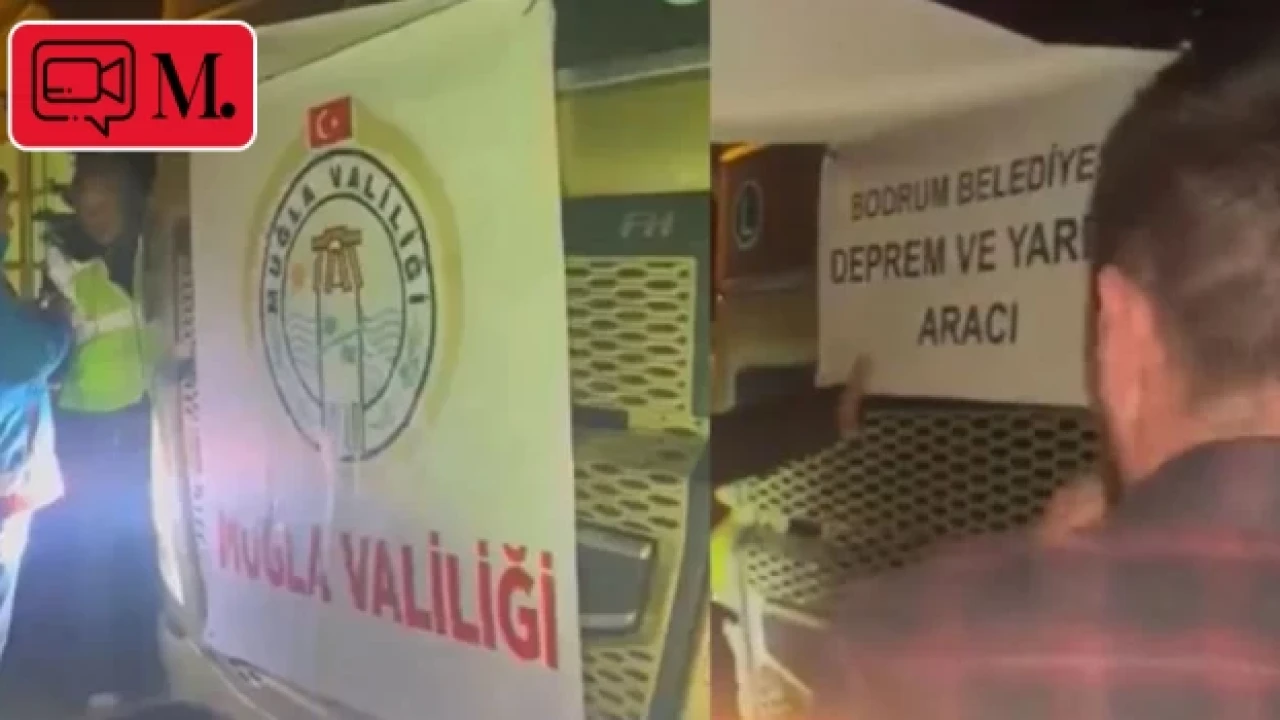 Felaketin yaşandığı kentlere iş makineleri, personel desteği ve yardım götüren Bodrum Belediyesi bir yandan hem kendi imkanları, hem de yurttaşların yardımlarından oluşan yardım TIR'ı yolluyor. Dün Muğla Valiliği, bir aracın üzerindeki "Bodrum Belediyesi deprem ve yardım aracı" yazılı pankartın üzerine "Muğla Valiliği" yazılı pankartı astığı görüntüler sosyal medyaya düştü.