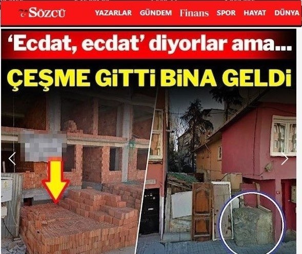 AKP’li Üsküdar Belediyesi, haczedilmemesi için mülkiyetindeki 97 parselin kamu hizmetinde kullanıldığına ilişkin meclisten karar çıkarttı. Ancak, 97 parselden biri olan, Silahtarbahçe’deki tarihi çeşmenin yerinde 5 katlı apartman dikildiği ortaya çıktı.