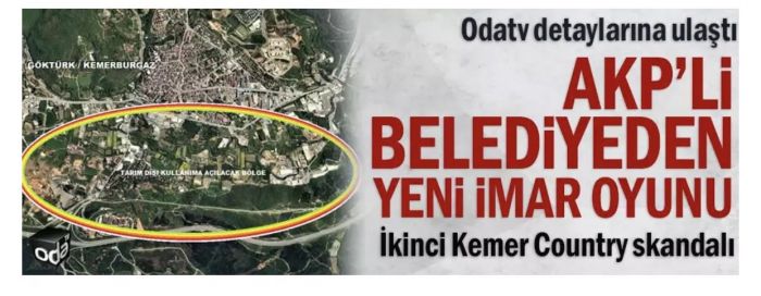AKP’li Eyüpsultan Belediyesi, Kemer Country komşuluğundaki tarım alanlarını, tarım dışı kullanıma açmak için girişim başlattı. Yaklaşık 3,5 milyon metrekarelik bir bölgenin, tarım alanı dışına çıkartılması için İlçe Meclisi’nden karar çıkartıldı.