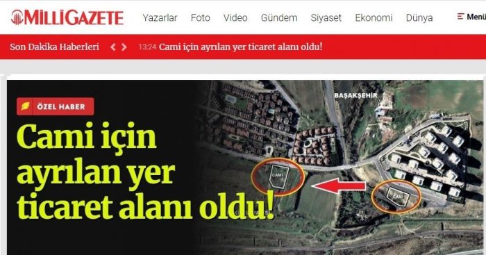 AKP’li Başakşehir Belediyesi, cami yapımı için ayrılan arazinin imar planlarını değiştirdi. Cami için bir başka yeri planlayan Belediye, caminin yerini ise ticaret alanına aldı.