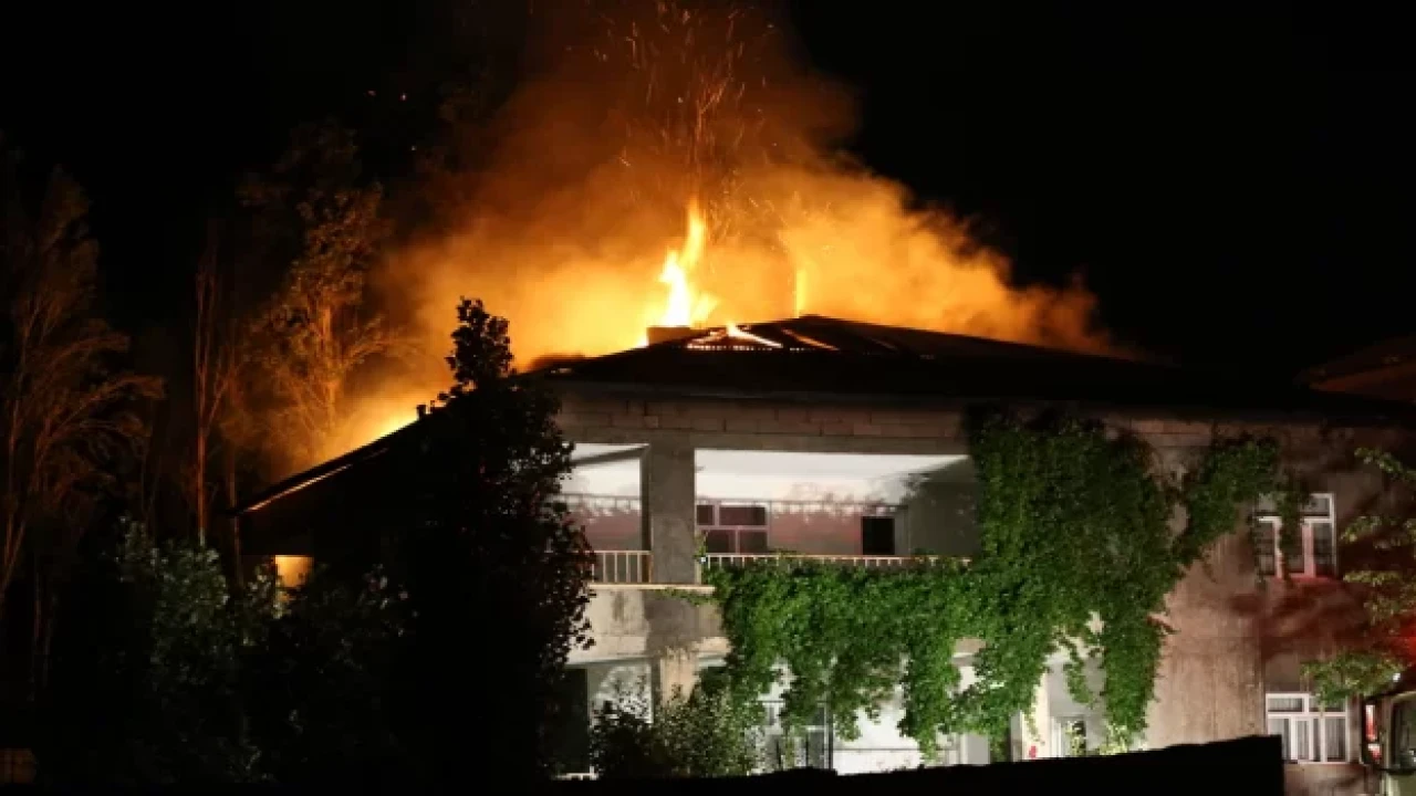 Merkeze bağlı Yeni Mahalle'de 2 katlı bir evin çatısında belirlenemeyen nedenle yangın çıktı.