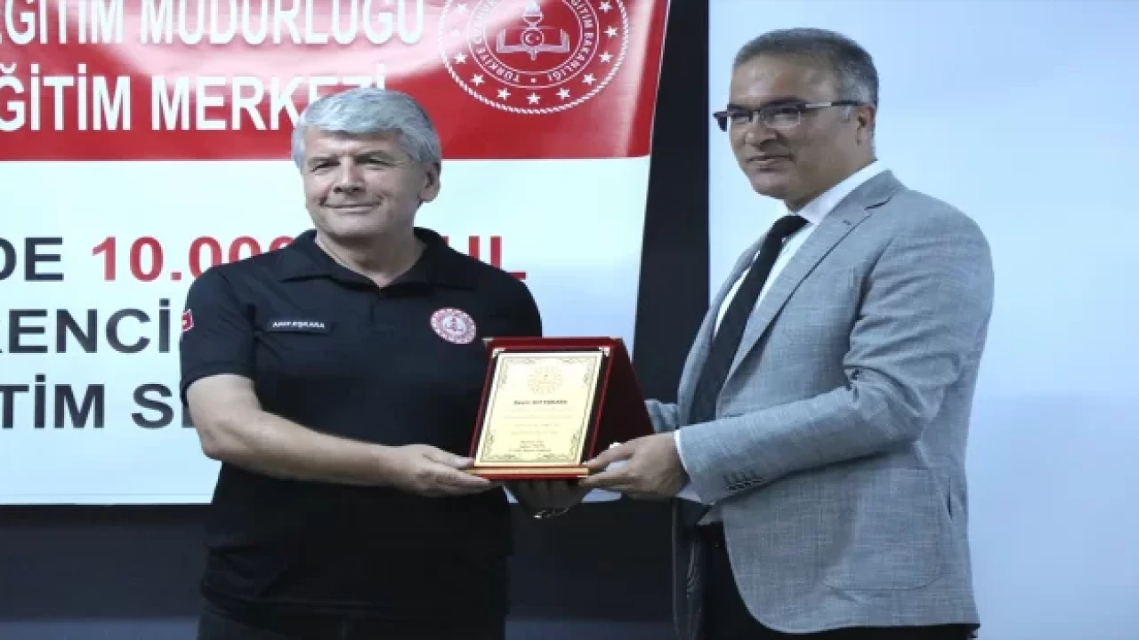 Milli Eğitim Bakanlığının "Temel Eğitimde 10 Bin Okul Projesi" kapsamında Ahmet Baldöktü İlkokulunda düzenlenen ilk yardım eğitimi programında Eşkara'ya plaket takdim edildi.