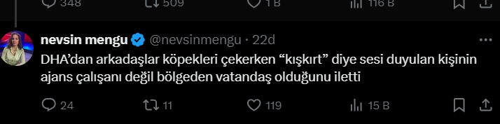 Konuyla ilişkin daha sonra açıklama yapan Mengü, köpekleri kışkırtan kişilerin muhabirler değil bölge halkı tarafından yapıldığını paylaştı. Nevşin Mengü paylaşımında şunları söyledi,
