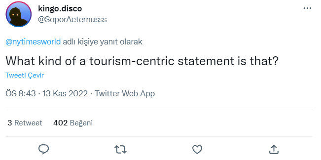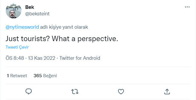 Bu paylaşımdan rahatsız olan kullanıcılar, "Bu nasıl turizm merkezli bir söylemdir?", "Sadece turistler mi? Nasıl bir bakış açısı?", "Böyle düşmanca bir haber yazılabilir mi?" diyerek tepki gösterdi.