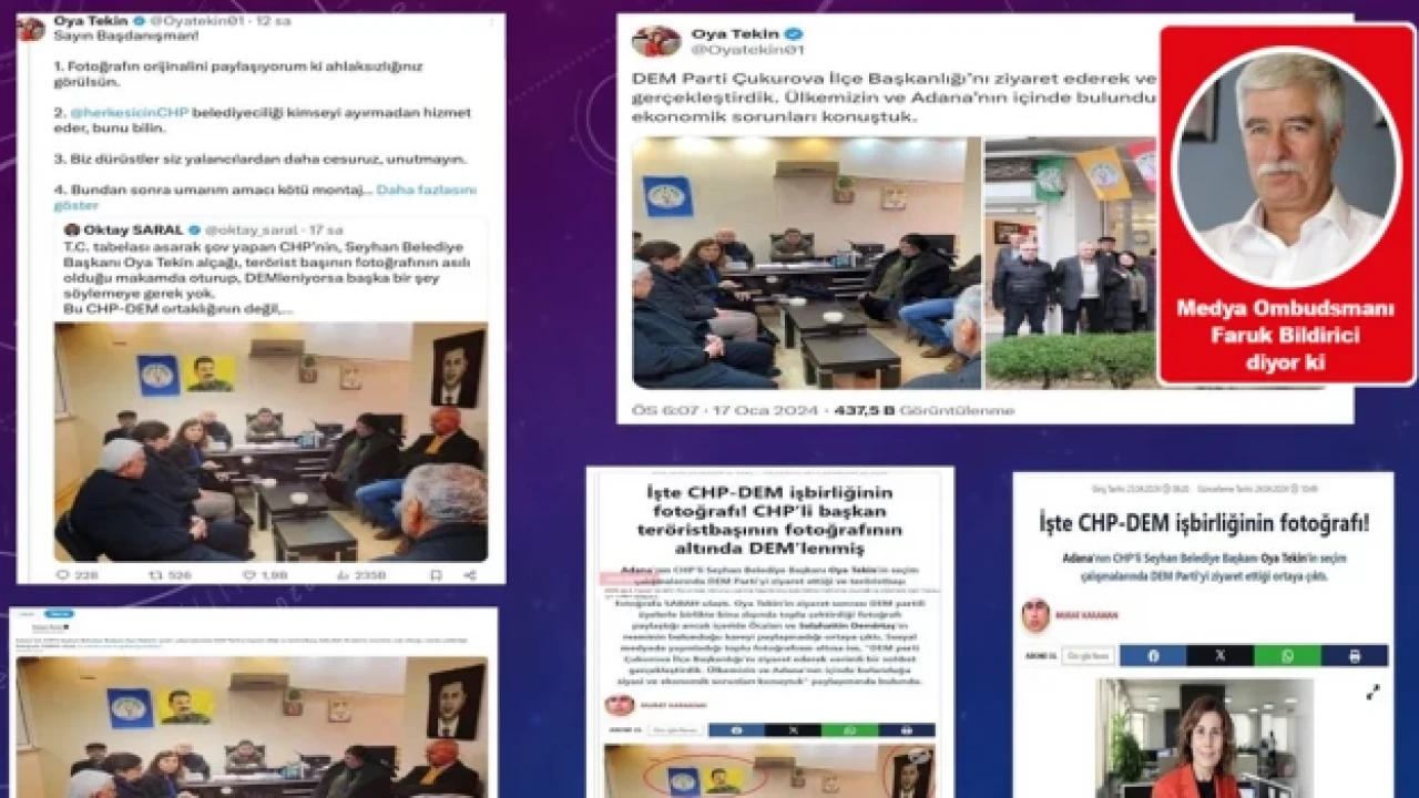 İktidar medyası da tıpkı Oktay Saral gibi yaptığı hatayı kabul etmedi; aynı siyasi mantık orada da kendini gösterdi. Sabah gazetesi montaj fotoğrafla ilgili açıklama yapmak ve özür dilemek yerine montaj fotoğrafı çıkarıp “İşte CHP-DEM işbirliğinin fotoğrafı: Adana'nın CHP'li Seyhan Belediye Başkanı Oya Tekin'in seçim çalışmalarında DEM Parti'yi ziyaret ettiği ortaya çıktı” diye yayımlamaya devam ettiler o haberi.