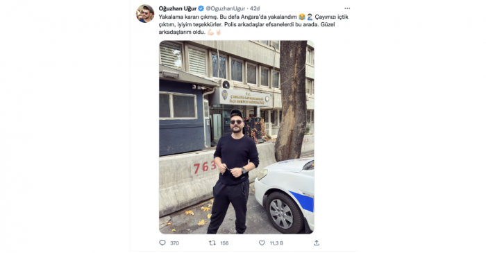 "Yakalama kararı çıkmış. Bu defa Angara’da yakalandım" ifadelerini kullanan Oğuzhan Uğur daha sonra serbest bırakıldığını ifade etti.