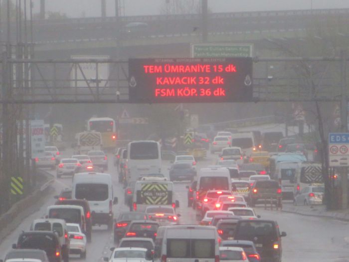 İstanbul'da 7 günlük ara tatilin sona ermesi ve yağmur yağışı nedeniyle trafik yoğunluğu oluştu. Kadıköy Bostancı mevki D-100 Karayolu'nda sabahın ilk saatlerinden itibaren yoğunluk görüldü.