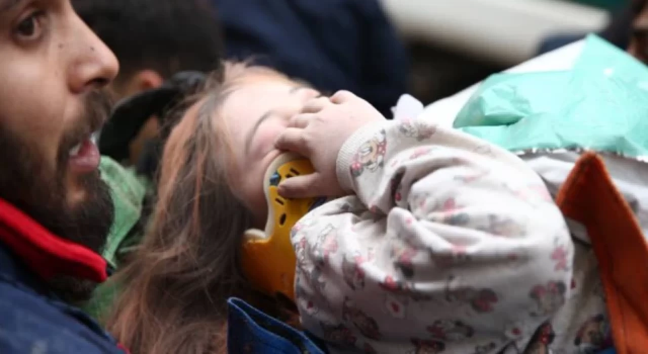Kahramanmaraş'ın Pazarcık ilçesi merkezli 7,4 büyüklüğündeki depremde yıkılan Osmaniye'deki 10 katlı binanın enkazından bir kız çocuğu kurtarıldı.