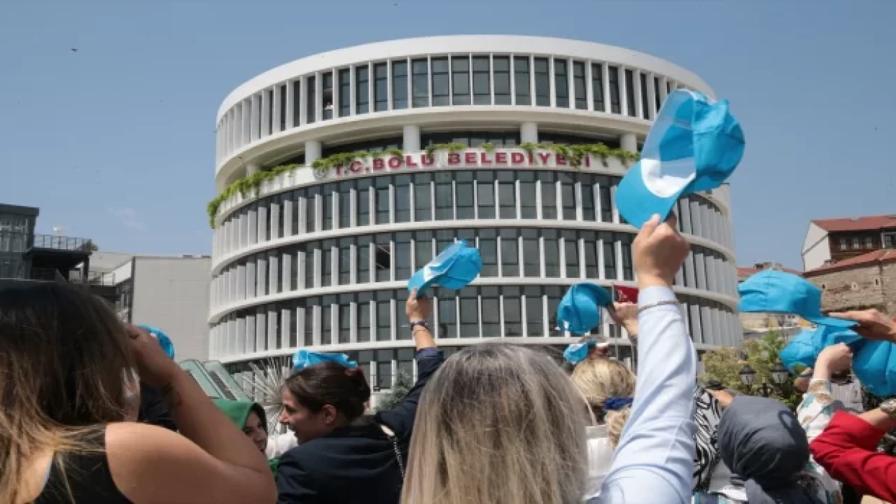 Bolu Belediyesi önünde toplanan sendika üyeleri ve vatandaşlar, açtıkları pankart ve dövizlerle çeşitli sloganlar attı. Bu sırada makam odasının penceresine çıkan Belediye Başkanı Özcan, kendisine tepki gösterenlere el salladı ve alkışladı.