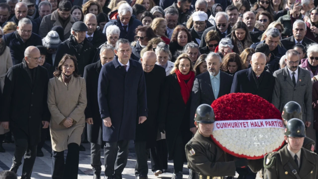 Özel'in, Atatürk'ün mozolesine çelenk koymasının ardından saygı duruşunda bulunuldu.