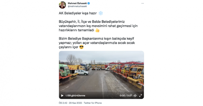 Özhaseki, sosyal medya hesabından, AK Parti'li belediyelerin kışa hazır olduklarını belirterek, şunları kaydetti: