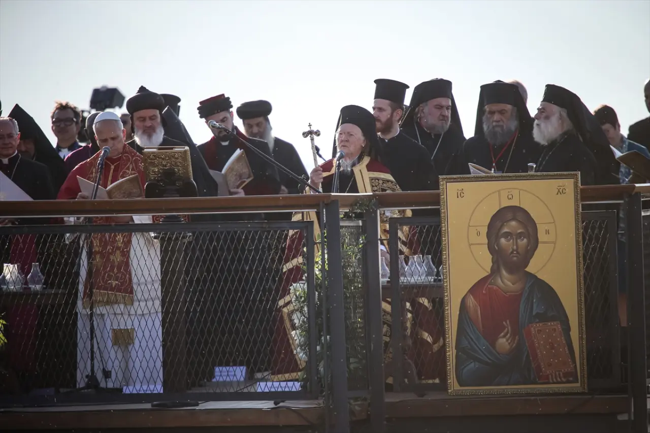 Fener Rum Patriği Bartholomeos ve yetkililerin eşlik ettiği Papa 14. Leo, batık bazilika alanında düzenlenen ayine katıldı. Birinci İznik Konsili’nin 1700. yıl dönümünün Hristiyanlık için özel bir fırsat olduğunu vurgulayan Papa, günümüzde şiddet ve çatışmalarla sarsılan insanlığın barışa olan ihtiyacını dile getirdi.
