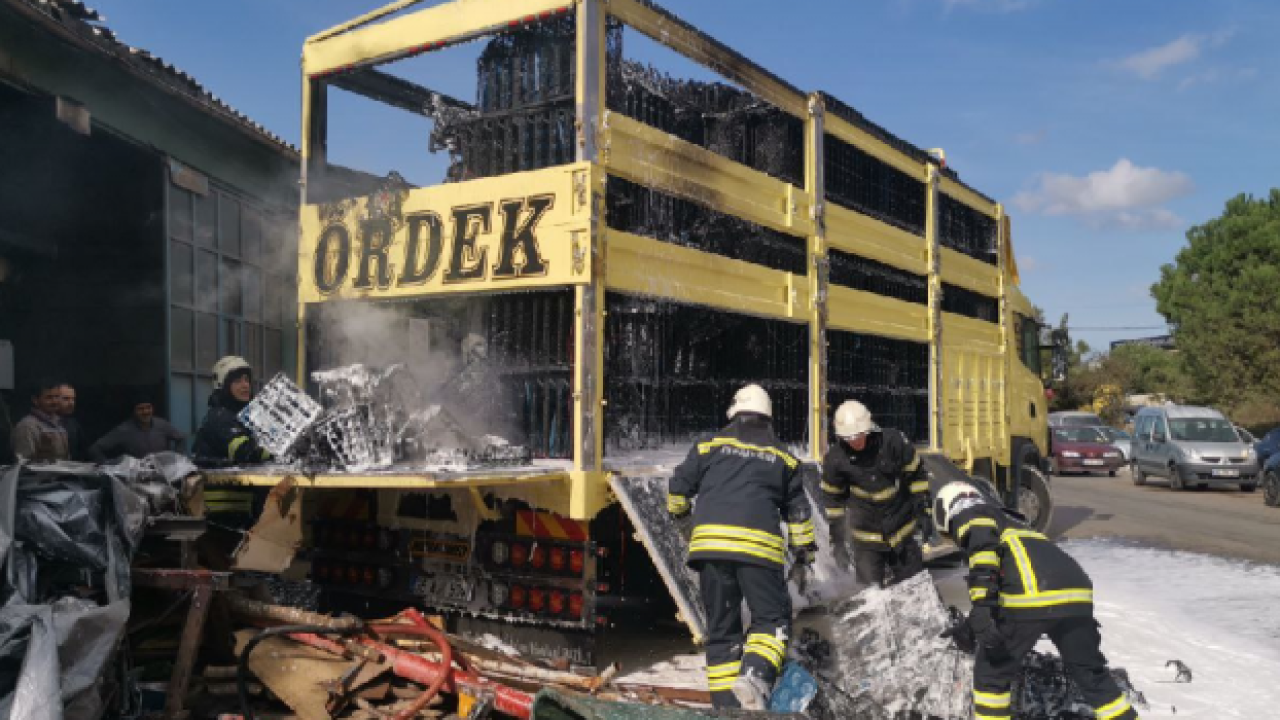 Kocaeli'nde plastik kasa yüklü kamyonda yangın çıktı. İtfaiye ekipleri çıkan yangını kontrol altına alındı.