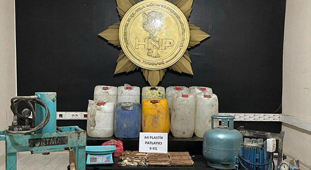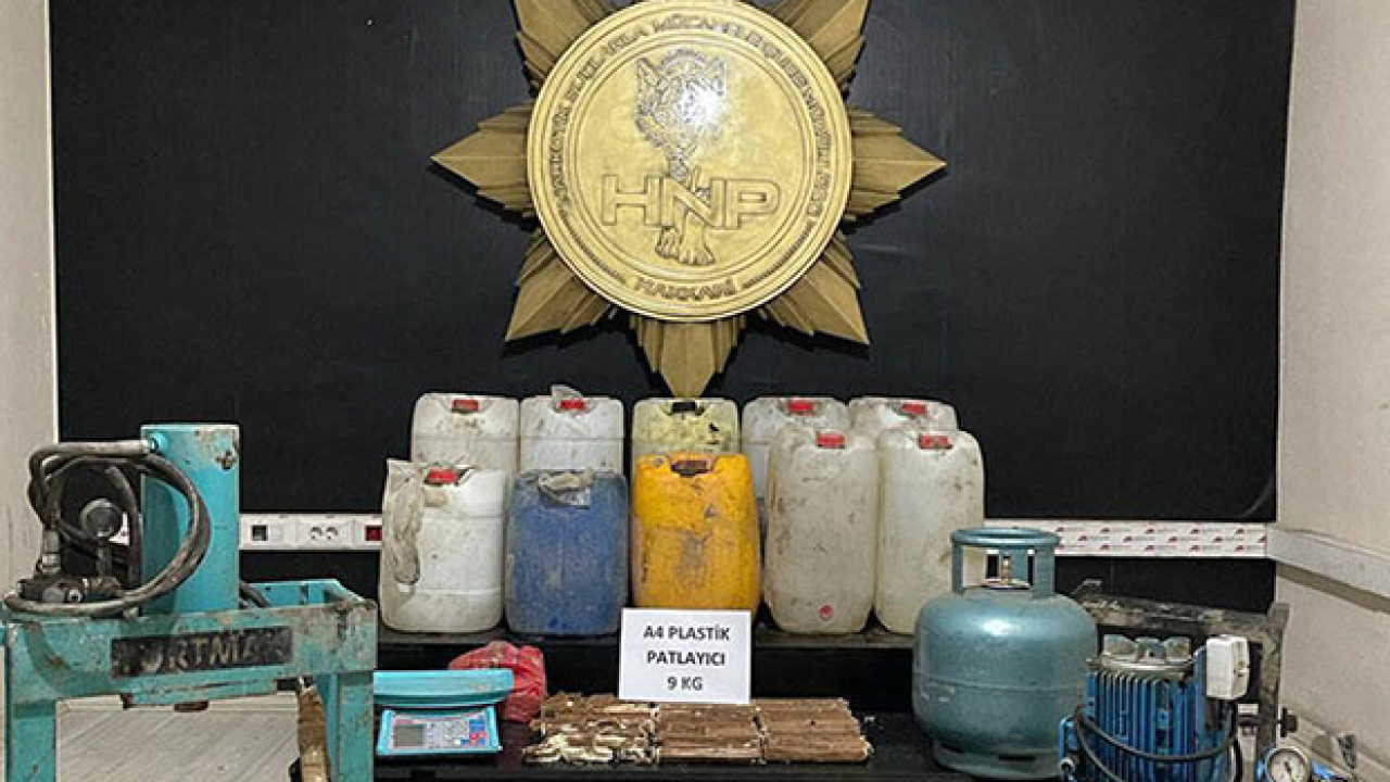 Hakkâri İl Emniyet Müdürlüğünün çalışmalarında ve Yüksekova ilçesinde bir ikamette yapılan aramalarda, toprağa gömülü vaziyette; 9 kilo 200 gram A-4 plastik patlayıcı, 426 litre asetik anhidrit (Eroin hammaddesi), 2 adet çelik yelek, 2 adet uyuşturucu madde pres makinesi, 1 adet hassas terazi, uyuşturucu madde çoğaltımı ile ilgili bilgilerin yazılı olduğu not defteri ele geçirilirken, 1 şüpheli şahıs gözaltına alındı.