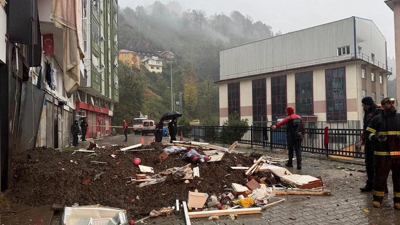Rize’nin Eskipazar Mahallesi’nde etkili olan yağış nedeniyle meydana gelen heyelanda toprak kütlesi, 6 katlı bir apartmanın arka tarafında kaydı. Olayın ardından bölgeye AFAD, polis, itfaiye ve 112 Acil Sağlık ekipleri sevk edildi.