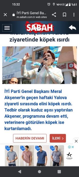 "İYİ Parti Genel Başkanı Meral Akşener'in geçen haftaki Yalova ziyareti sırasında elini köpek ısırdı. Tedbir olarak kuduz aşısı yaptırılan Akşener, programına devam etti, veterinere götürülen köpek ise kurtarılamadı."