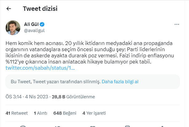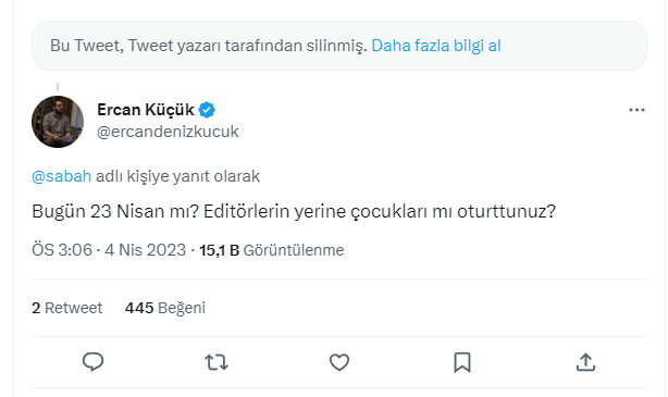 Görsel üzerinden yapılan yorumlardan rahatsız olan Sabah gazetesi bir süre sonra paylaşımı sildi.