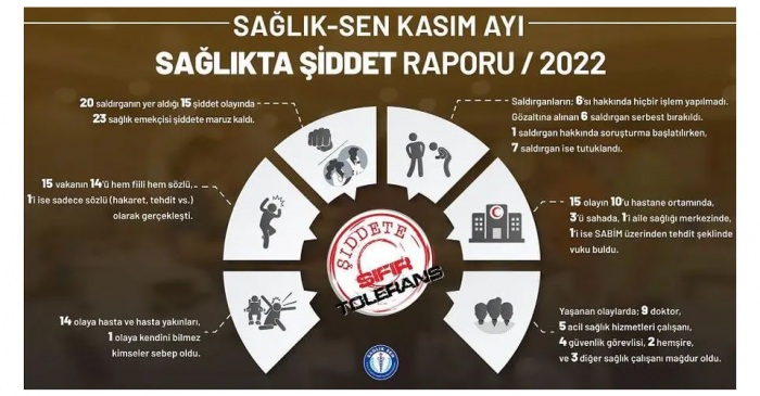 Sağlık-Sen tarafından yapılan yazılı açıklamada, alınan önlemlere ve yapılan tüm çağrılara rağmen sağlıkta şiddetin, çalışanları ve sağlık sistemini tehdit etmeye devam ettiği ifade edildi.