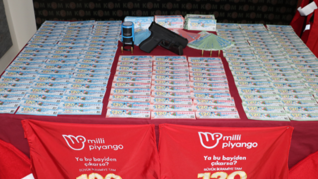 Şüphelilerin ikamet ve iş yerlerindeki aramada 2022 yılına ait sahte 1816 yılbaşı milli piyango bileti, üzerinde milli piyango ibaresi bulunan 12 yelek, 8 şapka, 1 kaşe, tabanca ile şarjör ve mermiler, çok sayıda dijital materyal ve dokümanlar ele geçirildi.