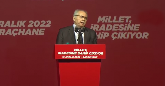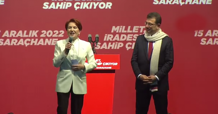 O nedenle aziz İstanbullular işaret fişeğini bugün buradan yaktığımız hukuk mücadelemizin demokrasi mücadelemizin eninde sonunda milletin iradesi ile tarihin tecelli edeceği gün milletimiz iradesini ortaya koyacaktır. Onların tek bir iddiası ideali ve davaları var; onlar bir kişinin ailesinin ve şurekâsının iktidarı ve mutluluğu için kavga veriyorlar. Oysa bizler bugün ne kadar haklı olduğumuz, ne kadar doğru olduğumuz ortaya çıkıyor. Altılı masa etrafında bir araya gelmiş olanlar yek vücut olanların demokrasi diye bir kavgası var. Korkusuzca yaşama hürriyeti adına bir meselesi var. Bu ülkede fırsat eşitliği diye bir kavgası var. Herkesin hukukundan emin olduğu bir Türkiye’yi kurmak gibi bir ideali mücadelesi kavgası var.