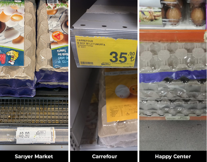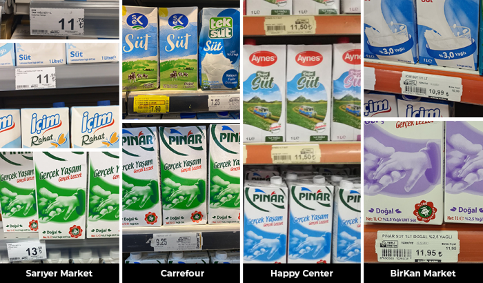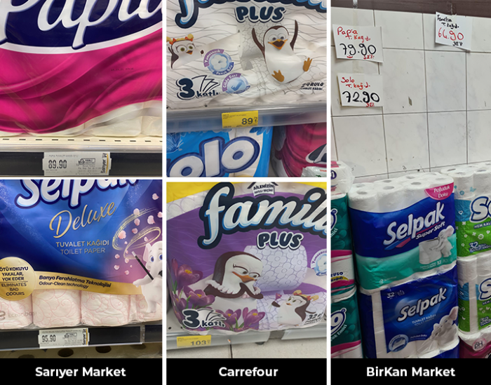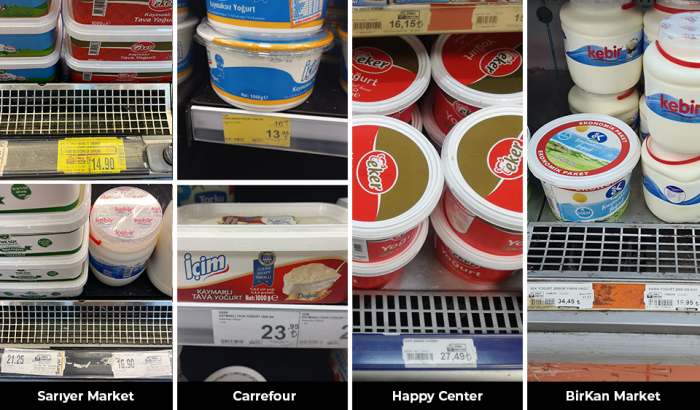 İstanbul’un 4 farklı semtinden 4 ayrı marketi; Sarıyer Sarıyer Market, Tarabya Carrefour, Mecidiyeköy Happy Center, Küçükçekmece BirKan’ı gezdik.