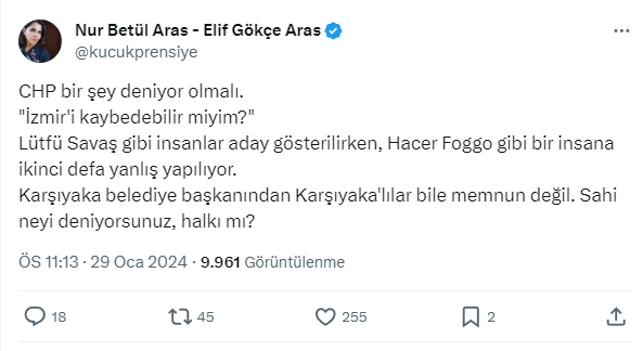 Bu gelişmenin ardından vatandaşlardan CHP’ye oldukça sert bir Hacer Foggo tepkisi geldi ve X platformunda ‘Hacer Foggo’ ismi trend topic oldu